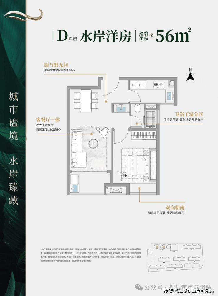 建面56㎡一房总价约167万起,建面71㎡两房总价约202万起,上车无压力。